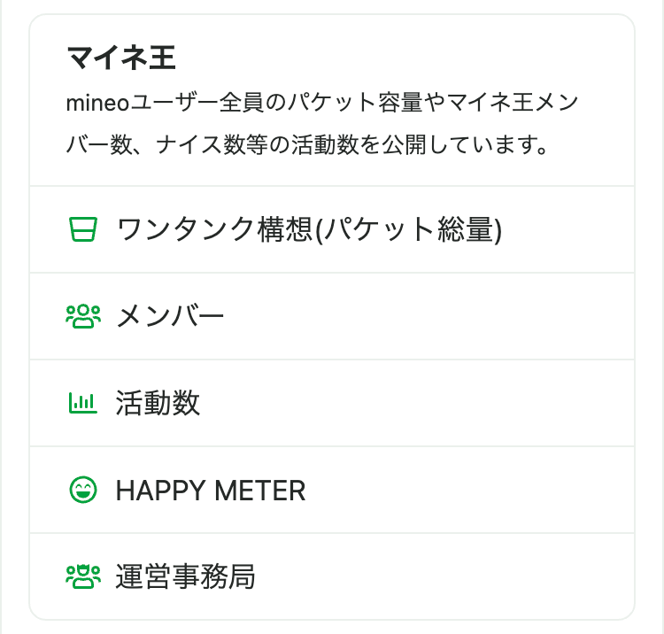 こちらで、mineoのさまざまな公開情報が閲覧できます。公開情報メニューに「」が付いた情報は、アンバサダーのみ閲覧できる特別な内容です。