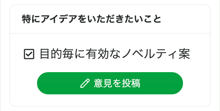 共創アンバサダーの方に運営事務局からアイデアをいただきたいテーマを募集することがあります。ぜひ貴重なご提案をお願いします!