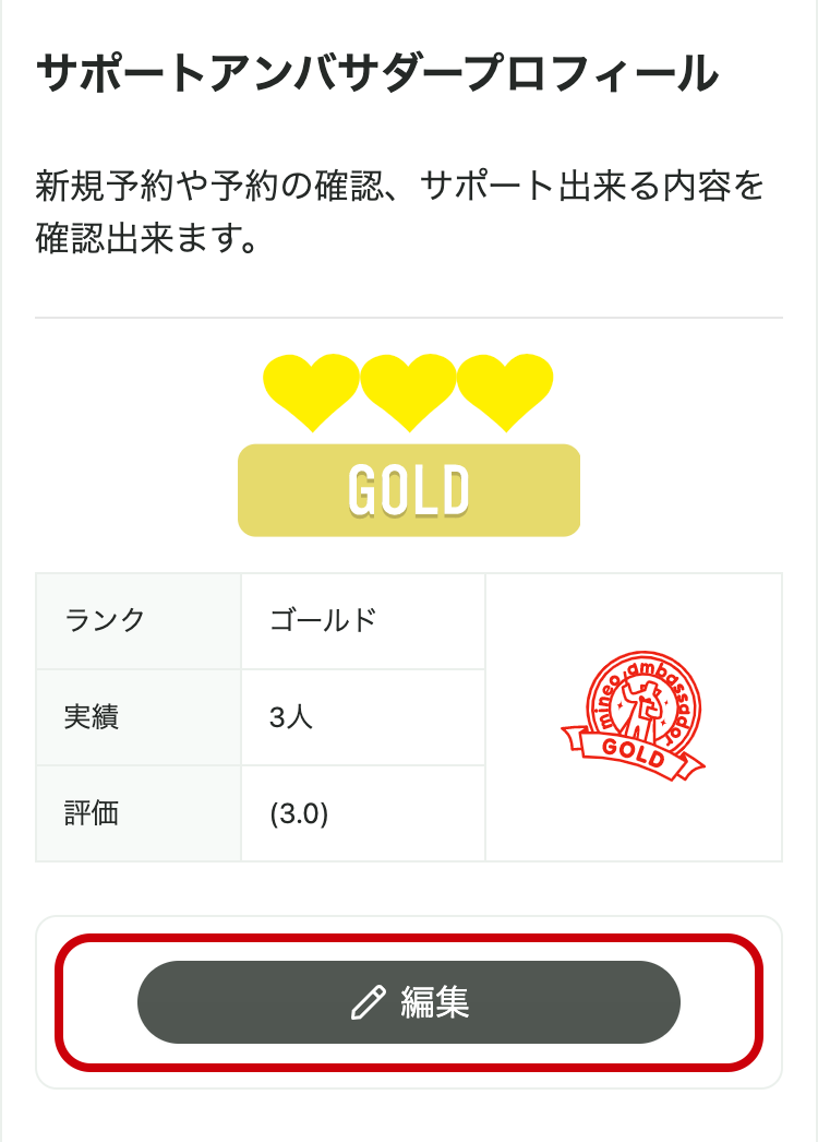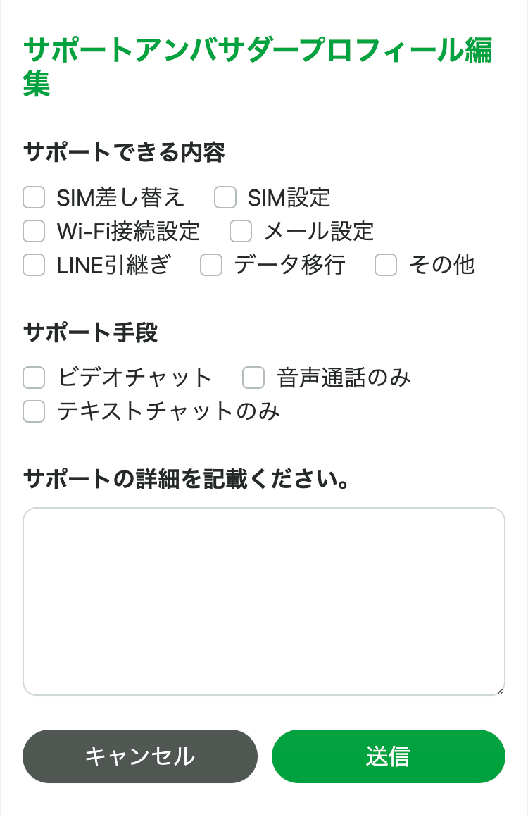 「サポートアンバサダーの詳細」で、あなたの空き時間、得意なこと等の諸情報を予めご登録ください。