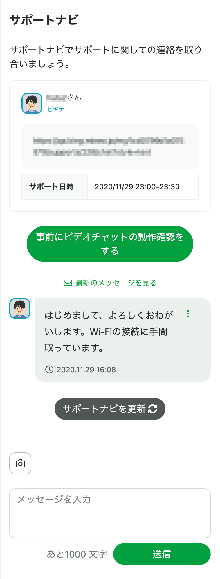 サポートナビを使ってアンバサダーとメッセージのやりとりを行うとこで、ビデオチャットでの会話がより円滑に進みます。
