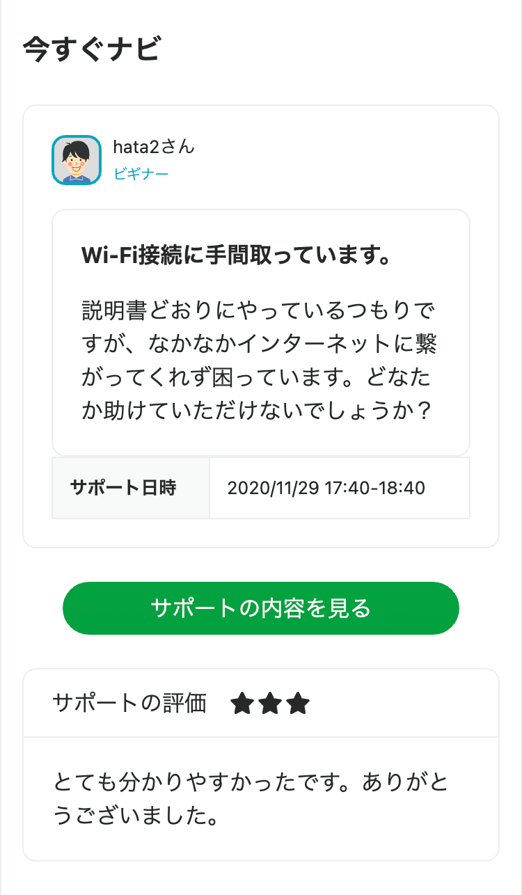 「サポートナビ」で詳細が確認できます。テキストのチャットでやりとりをすることも可能。