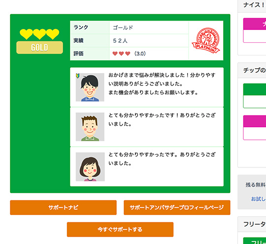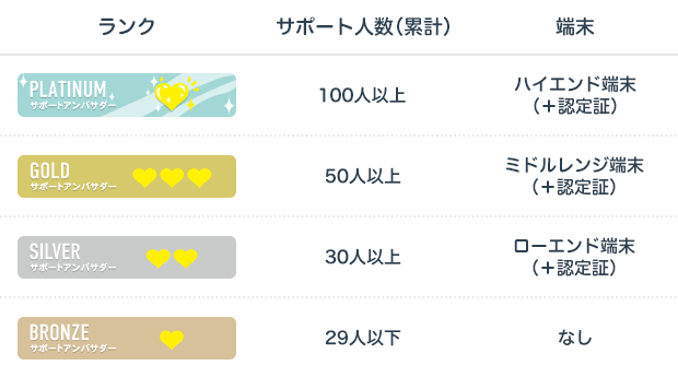 サポート人数に応じたランクをご用意。「GOLD」などのランクがあなたのマイページに表示されます。