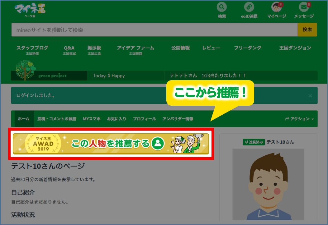 推薦時、その理由も書き込めます(任意)。