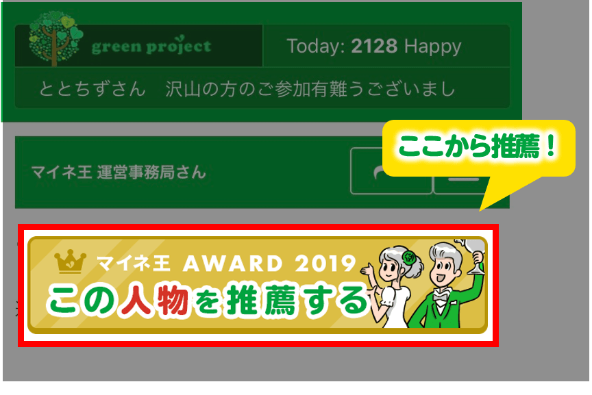 | 対象人物 | マイネ王で、あなたが最も2019年に活躍したと思うユーザー。 |