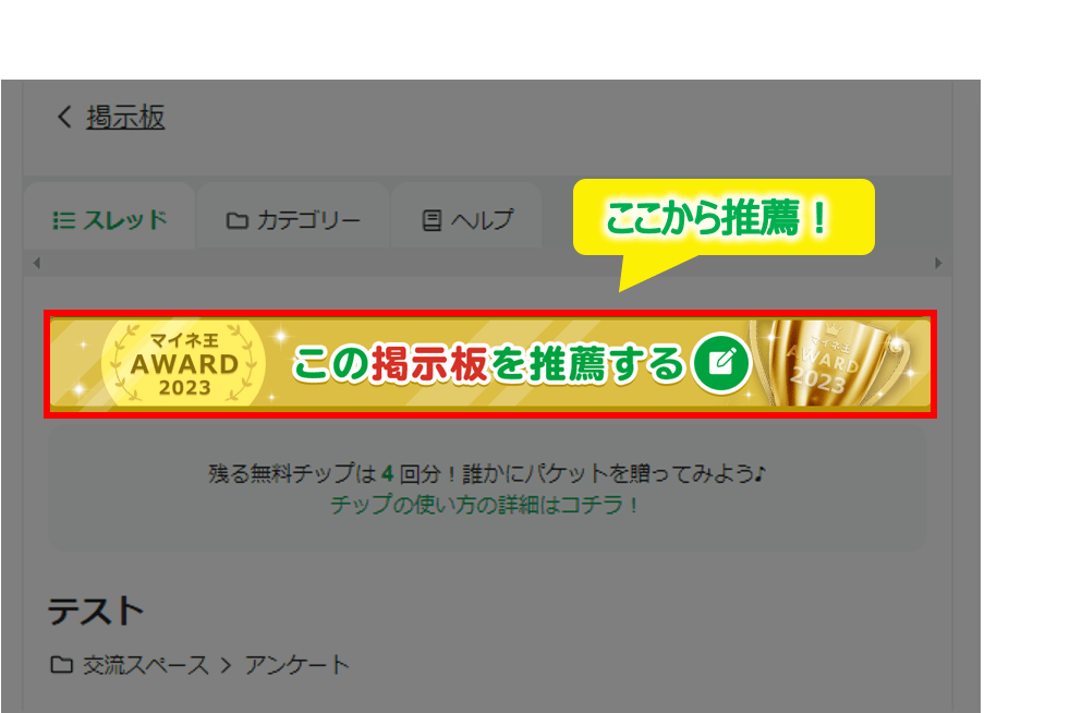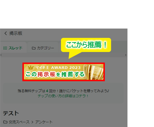 3. 「マイネ王アワードに推薦可能な掲示板のみ」をONにする。
