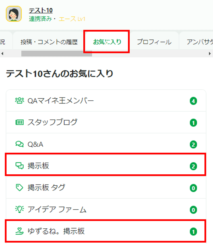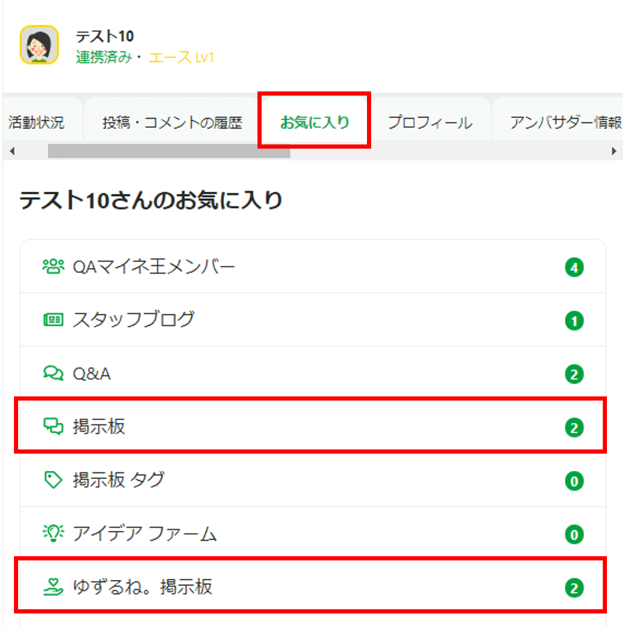 2. メニュータブの「お気に入り」を押し、「掲示板」もしくは「ゆずるね。掲示板」を選択する。