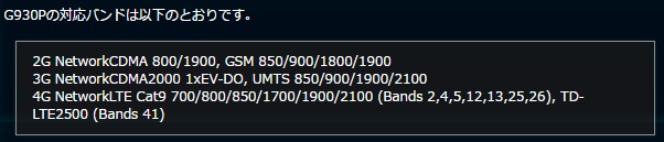 galaxy s7 simフリー(SM-G930P)の対応バンド