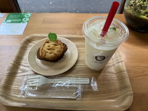 アップルパイとりんごヨーグルトで休憩中です💦