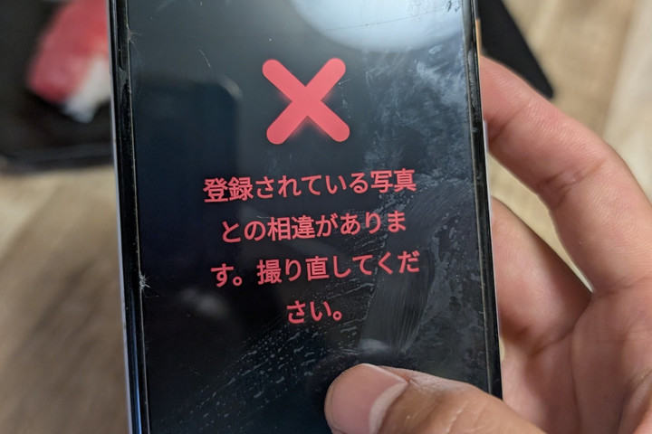 ちなみに、登録写真とまったく違ったモノ・構図で撮影した場合、撮り直しのメッセージが出てきます。