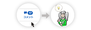 「コメント・回答」の累計と月毎(or 日毎)の「コメント・回答」数を表しています。
