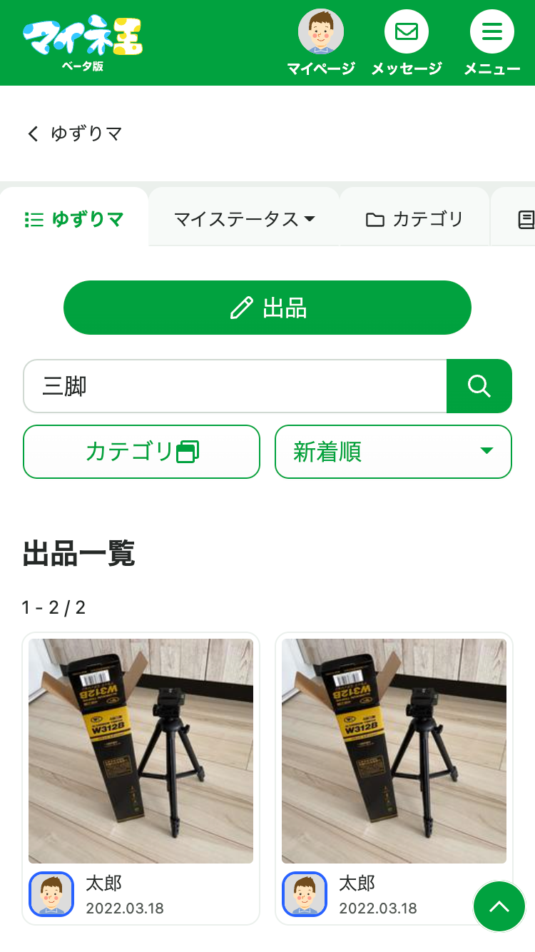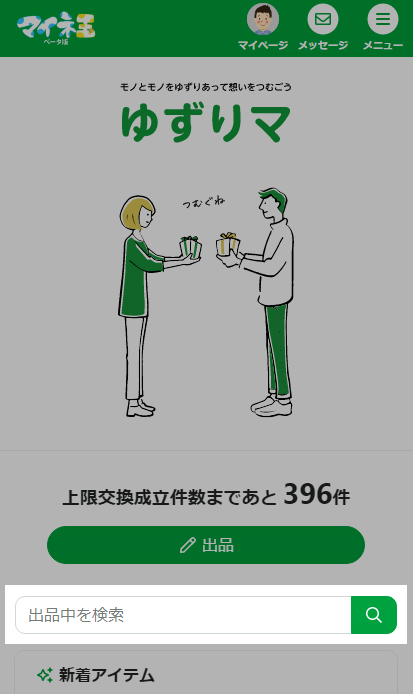 「ゆずりマ」TOPにある「新着アイテム」エリアから、最近新しく登録された最新8件のアイテムを見ることができます。