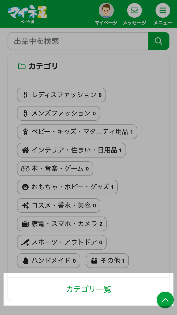 「ゆずりマ」TOPにある「カテゴリ」エリアから、ゆずりマに登録されているアイテムをカテゴリ別に見ることができます。