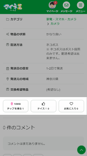 出品者にアイテムについて質問したいときなどは、「コメント」機能をご活用ください。
